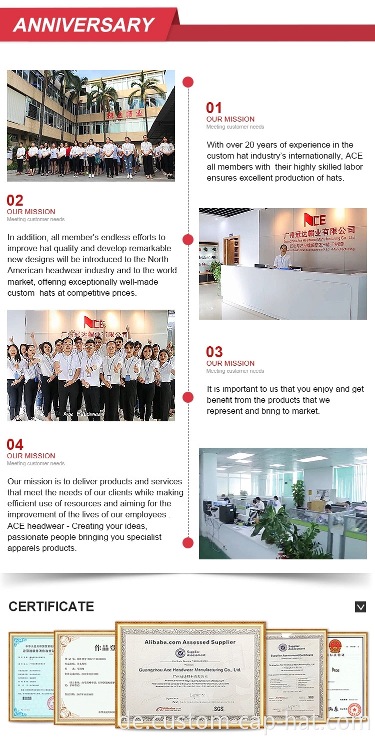 So können wir alle Arten von Kappen für Sie, Baseballkappe, Hip-Hop-Kappe, Trucker-Mütze, Camper-Hut, Eimerdeckel, Strickähte, Sportmütze, Militärkappe, Efeuhut, Sonnenvisor, Modehut, funktionale Hut, Wäsche herstellen, gewaschen Mütze, Kinderstil, Wintermütze, blockierter Hut-/Strohkappe, Golfmütze, Werbemappe und andere, die Sie wollen.